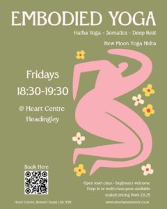 We can adapt for many injuries and conditions, but group yoga sessions are not suitable for all bodies or all conditions – sometimes private sessions are more appropriate. This might be short term so you can find adaptations that suit your individual needs, or longer term if you need ongoing individual attention. If you have an injury or serious physical or mental health condition you think may impact your participation, please get in touch and we can explore what would suit you. Also, just to note, whilst these yoga sessions are trauma informed and can have therapeutic benefits, this is not Yoga Therapy or a replacement for any other types of therapy. I endeavour to facilitate a space where you are free to explore body and breath and these types of practices don’t necessarily feel good – or safe – for all people at all times. You are in charge of your bodymind, and I can’t know your internal experience. You will be encouraged to find and honour your own limits and boundaries here. Please get in touch if you want to know more about what is involved and check this is the right space for you.